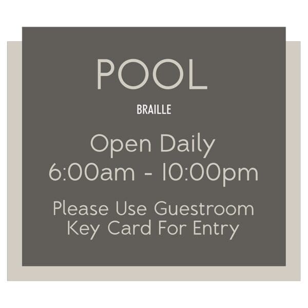 Room identification signs are made with tactile letters and Grade 2 Braille for ADA compliance. Every sign uses easily identifiable words and phrases to make wayfinding easy for guests. Signs are made with vandal-proof photopolymer for exterior use ONLY. Comes with foam tape on the back for easy mounting.