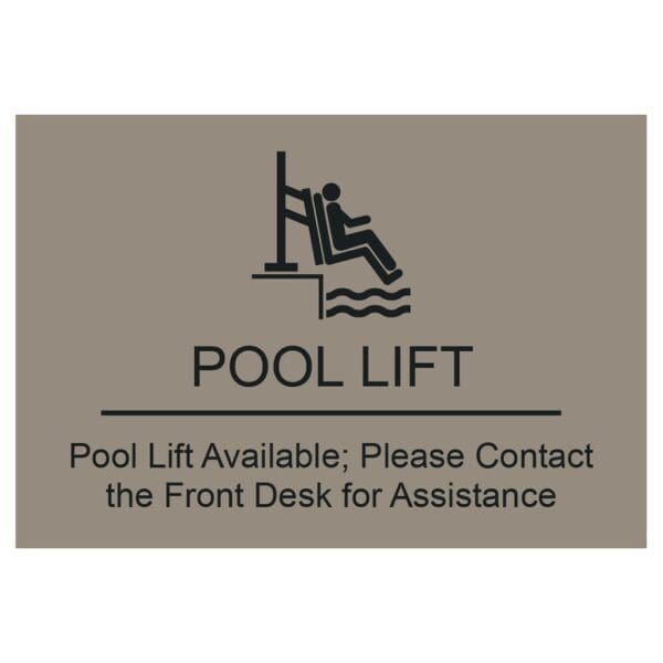 Ensure the safety of your guests with brand-approved Pool Lift Informational signs. Text on sign is flat and is for interior and exterior use. Sign comes with foam tape on the back for easy mounting.