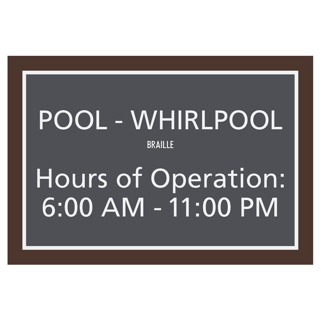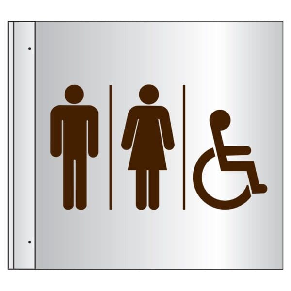 Help customers navigate your hotel by denoting restrooms with double-sided overhead restroom signs, featuring digitally printed text and symbols. Comes with mounting brackets.