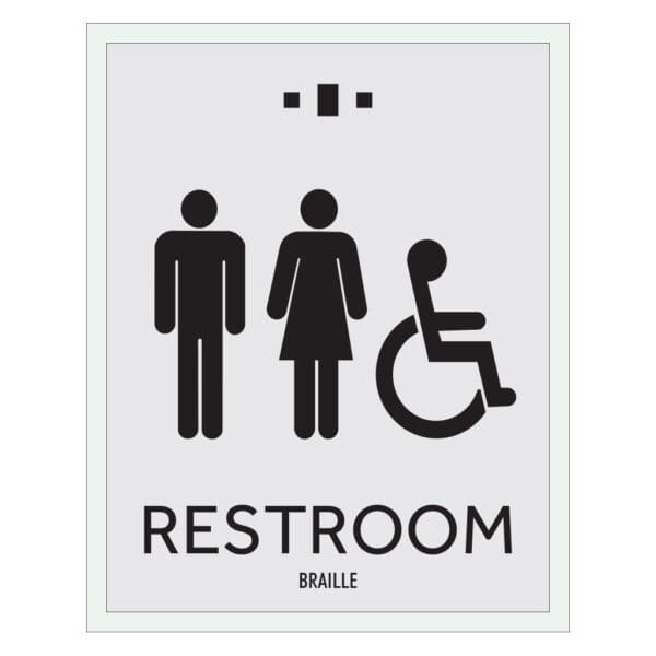 Mark each bathroom with a restroom identification sign. Restroom signs feature raised text, symbols and Grade 2 Braille. Signs are made with vandal-proof photopolymer and are for exterior use only.