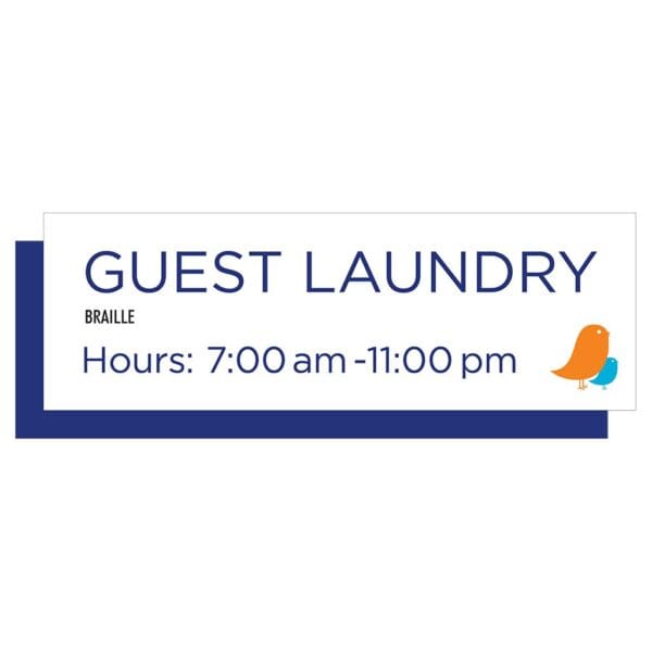 Room identification signs are made with tactile letters and Grade 2 Braille for ADA compliance. Every sign uses easily identifiable words and phrases to make wayfinding easy for guests. Signs are made for interior and exterior use and come with foam tape on the back for mounting.