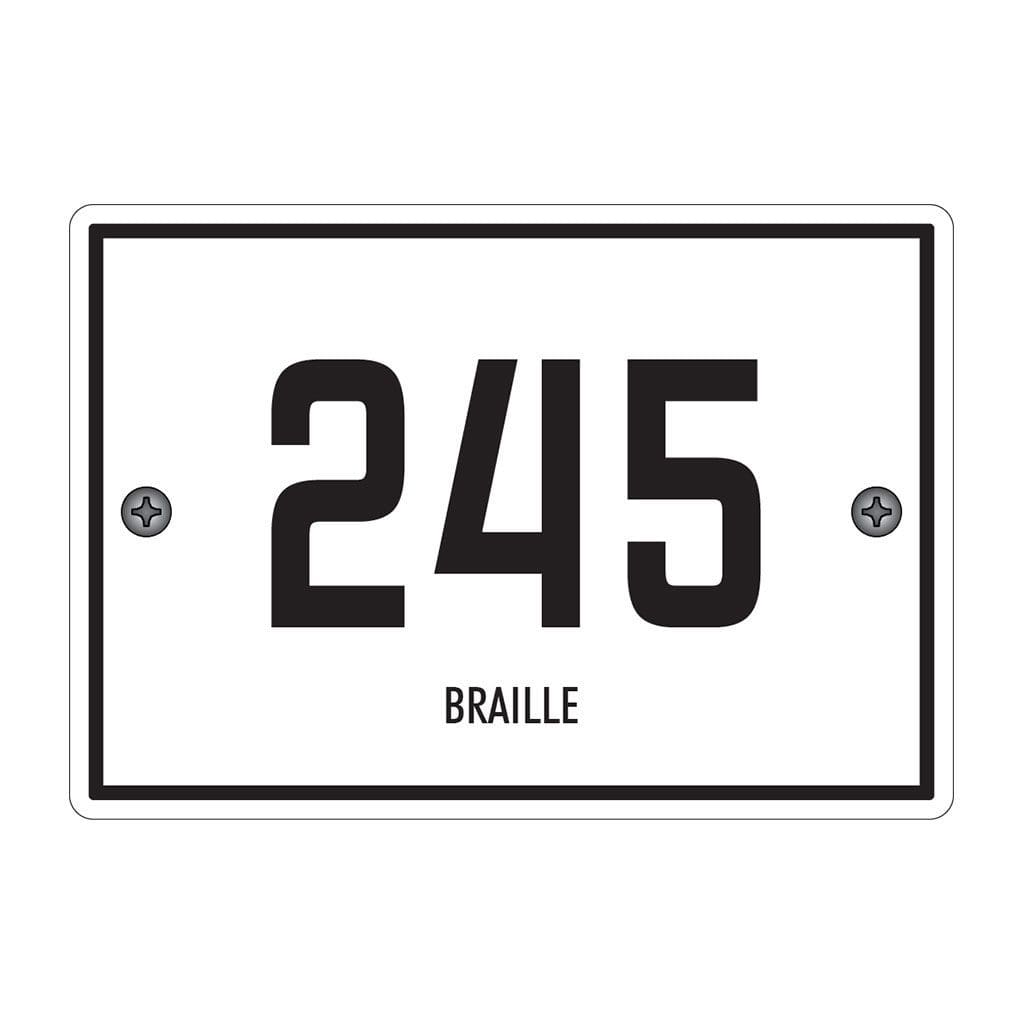 Establish an easy-to-follow room numbering system in your hotel with brand-approved room number signs. Each sign features raised text, symbols and Grade 2 Braille for ADA-compliance. 3-digit room number signs are made with aluminum and come with mounting hardware.
