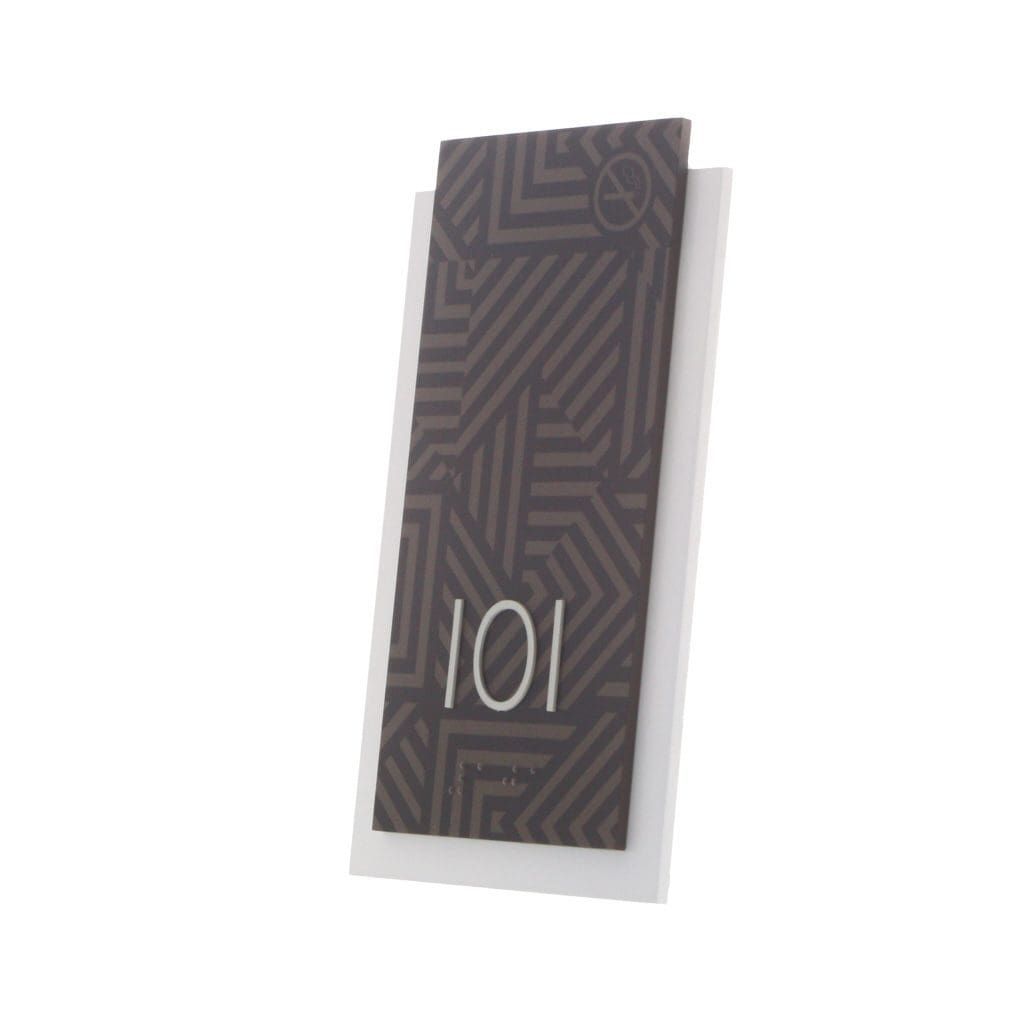 Establish an easy-to-follow room numbering system in your hotel with room number signs. Each sign features raised text, symbols and Grade 2 Braille. Signs come with foam tape on back for easy mounting.