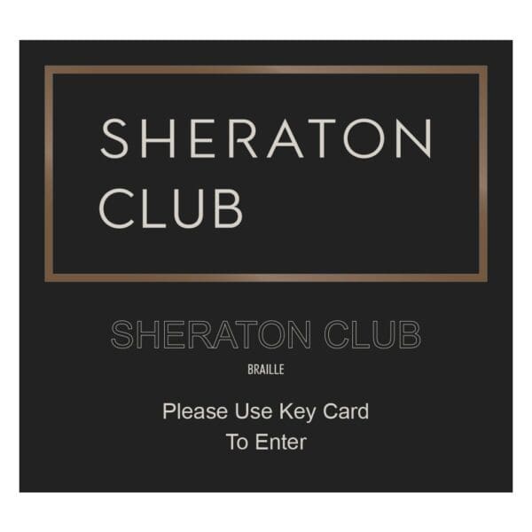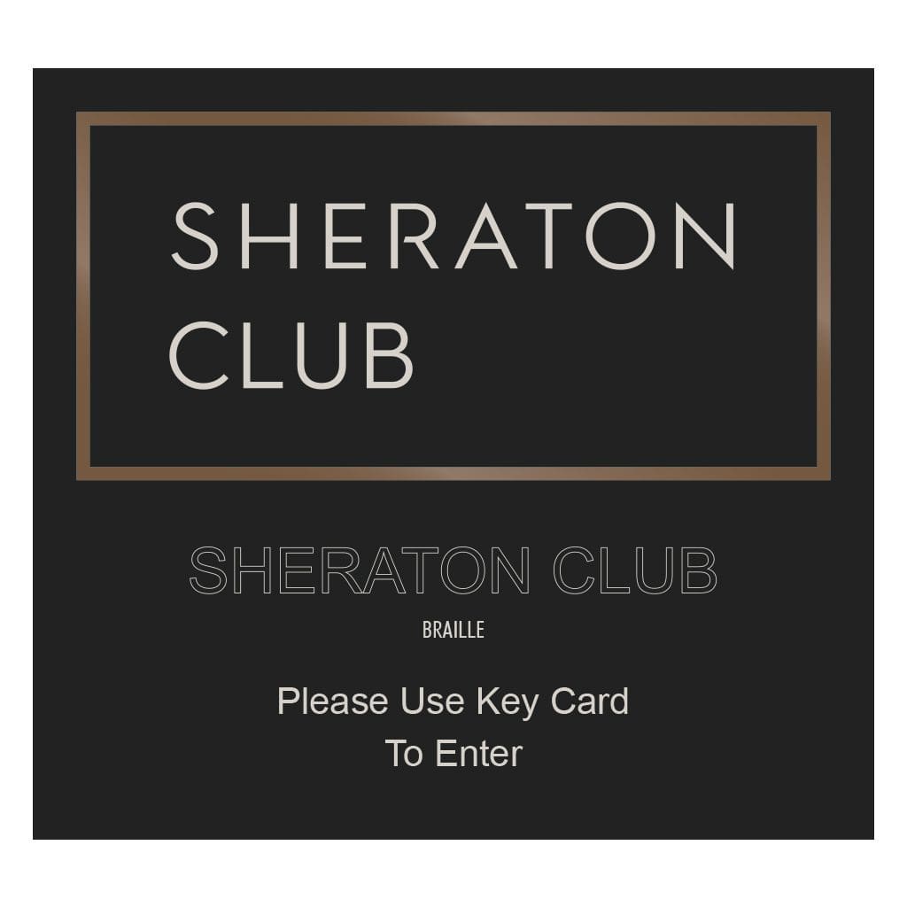 Room ID Sign denoting the Sheraton Club. Sign is ADA-Compliant, featuring tactile copy, braille and foam tape on the back the easy mounting.
