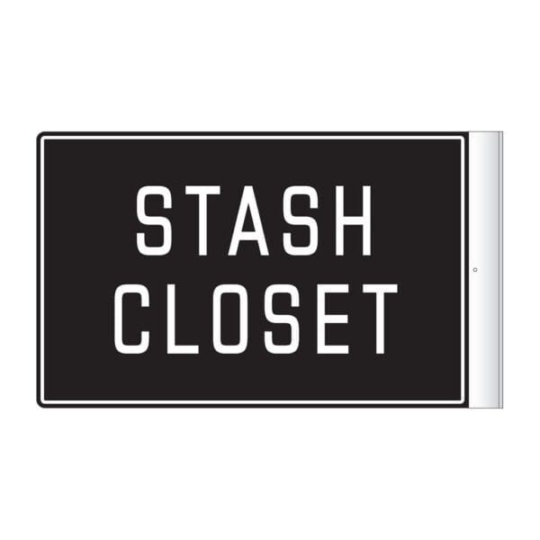 Double-Sided Stash Closet ID sign is used to help guests and employees find their intended destination. Sign is mounted to the wall and contains identical flat text on both sides. Signs come with mounting hardware.