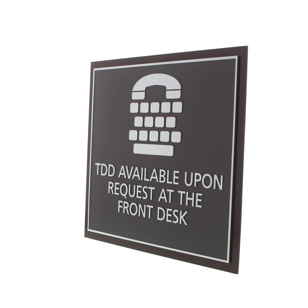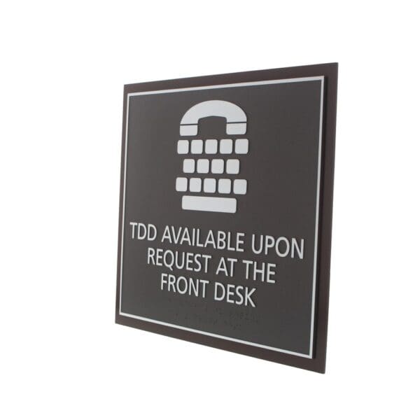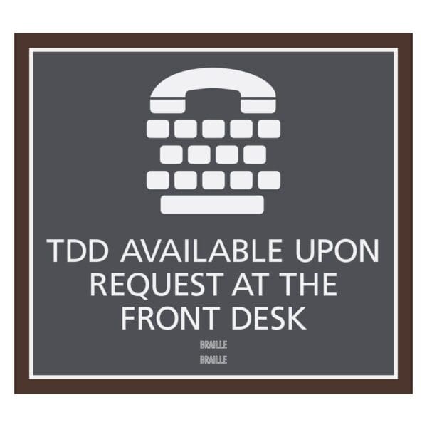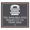 Let those with a hearing impairment know your hotel can assist them if they need to make a phone call with TDD signs. Sign is ADA-compliant and comes with foam tape on the back for easy mounting.