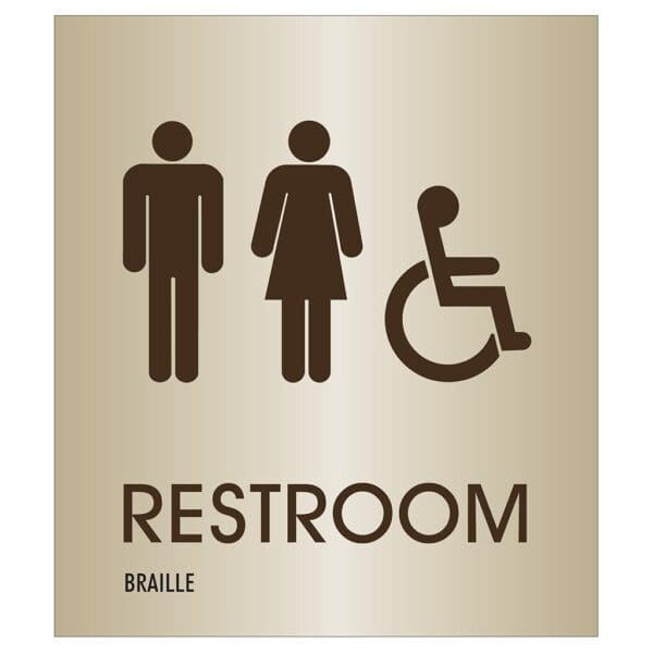 Mark each bathroom with a restroom identification sign. Restroom signs feature raised text, symbols, Grade 2 Braille and come with foam tape on the back for easy installation.