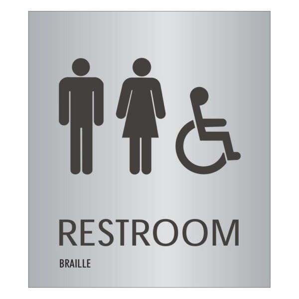 Mark each bathroom with a restroom identification sign. Restroom signs feature raised text, symbols and Grade 2 Braille. Signs come with foam tape on back for easy mounting. For interior use.
