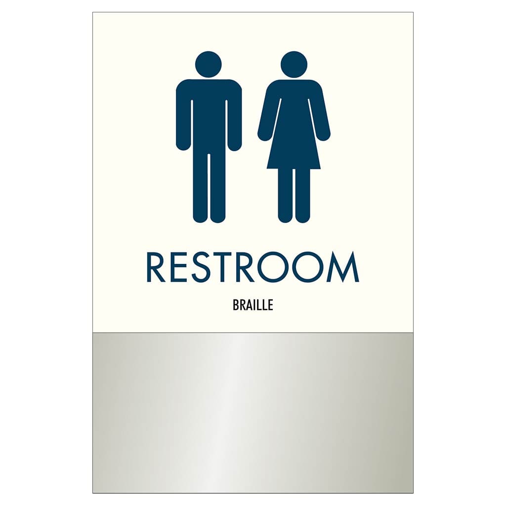 Mark each bathroom with a restroom identification sign. Restroom signs feature raised text, symbols and Grade 2 Braille. Signs come with foam tape on back for easy mounting.