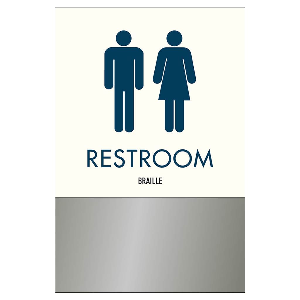 Mark each bathroom with a restroom identification sign. Restroom signs feature raised text, symbols and Grade 2 Braille. Signs come with foam tape on back for easy mounting.