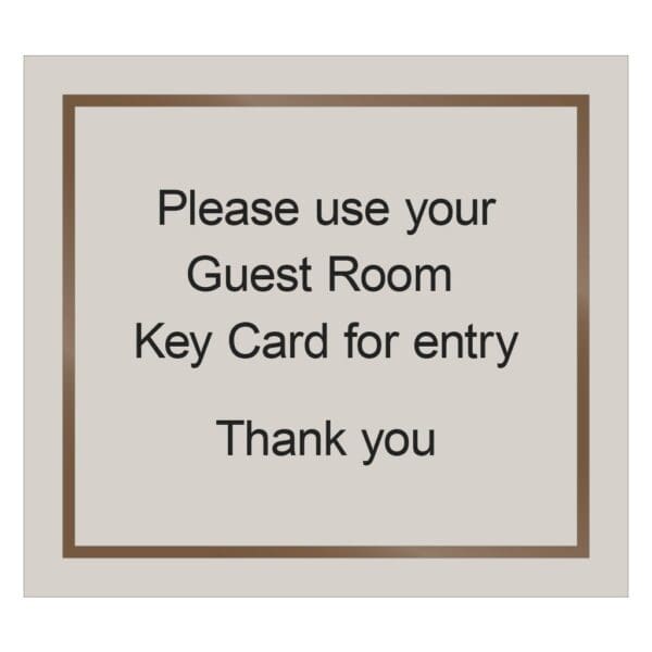 Inform guests when and where they have to use their key card to gain entry. Text on sign in digitally printed and sign comes with foam tape on the back for easy installation.