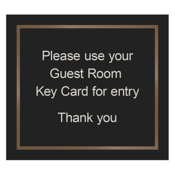 Inform guests when and where they have to use their key card to gain entry. Text on sign in digitally printed and sign comes with foam tape on the back for easy installation.