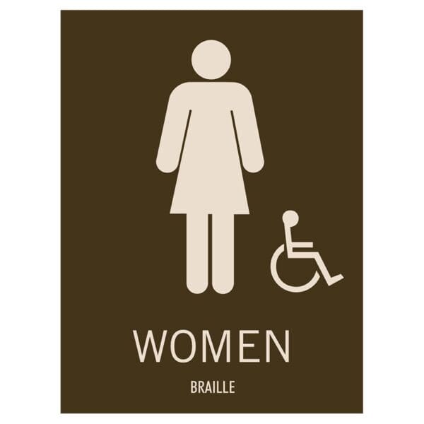 Mark each bathroom with a restroom identification sign. Restroom signs feature raised text, symbols and Grade 2 Braille. Signs come with foam tape on back for easy mounting. For interior and exterior use.