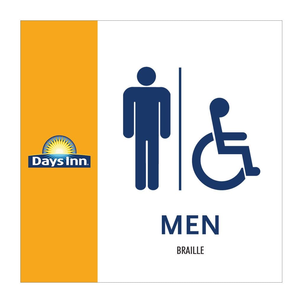 Mark each bathroom with a restroom identification sign. Restroom signs feature raised text, symbols and Grade 2 Braille. Signs come with foam tape on back for easy mounting and are made with photopolymer. For interior and exterior use.