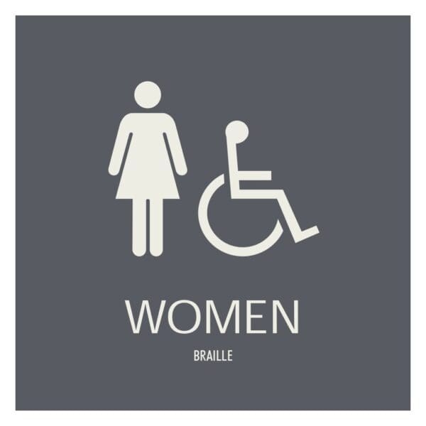 Mark each bathroom with a restroom identification sign. Restroom signs feature raised text, symbols and Grade 2 Braille. Signs come with foam tape on back for easy mounting. For interior and exterior use.