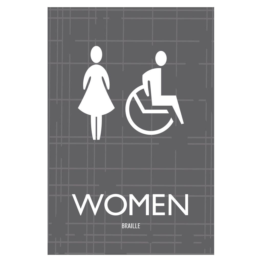 Mark each bathroom with a restroom identification sign. Restroom signs feature raised text, symbols and Grade 2 Braille. Signs come with foam tape on back for easy mounting. For interior and exterior use.