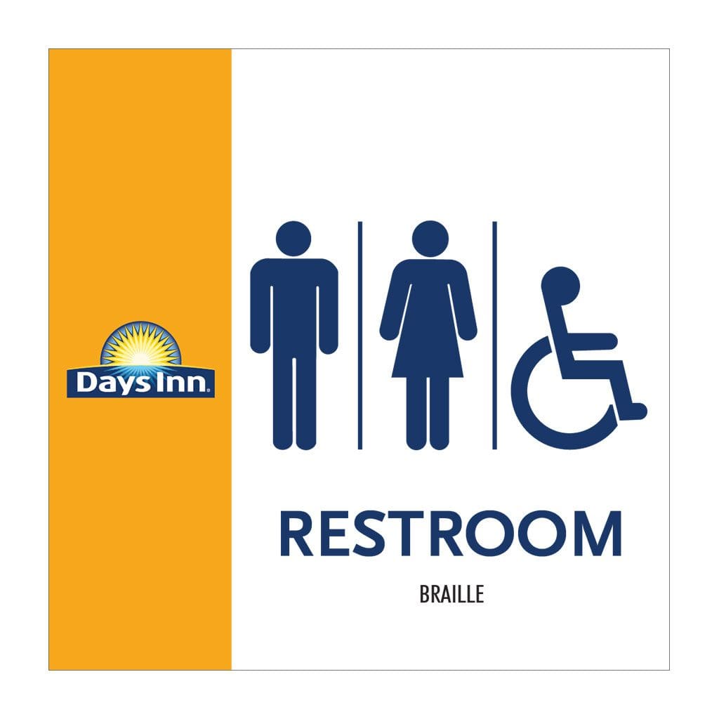 Mark each bathroom with a restroom identification sign. Restroom signs feature raised text, symbols and Grade 2 Braille. Signs come with foam tape on back for easy mounting. For interior and exterior use.