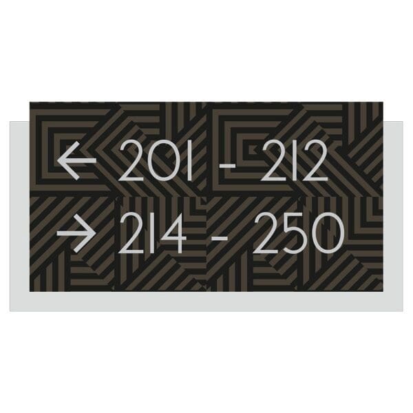 Help guests navigate your hotel easily with directional signs. Signs feature tactile copy for ADA-compliance and come with foam tape for easy mounting. For interior use only.