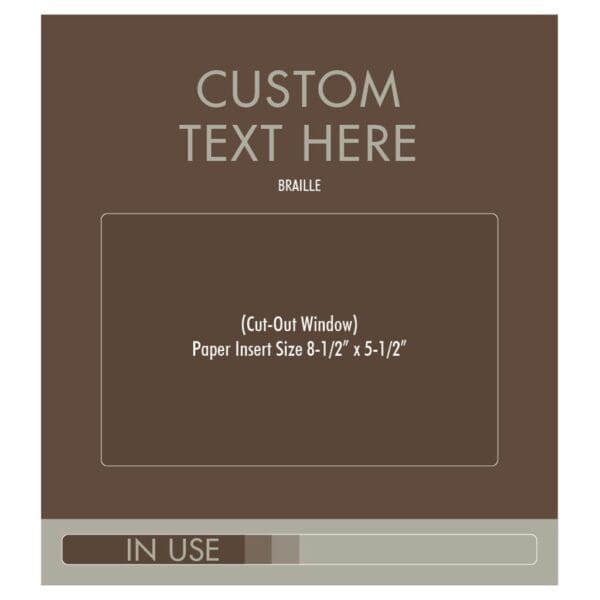 Room identification signs are made with tactile letters and Grade 2 Braille for ADA compliance. Every sign uses easily identifiable words and phrases to make wayfinding easy for guests. Slider on sign is digitally printed and has a sliding panel that reveals “In Use/Open” to let people know when they can use the meeting room. Meeting Room ID’s are for interior use only. Comes with foam tape on the back for easy mounting and panel for user-generated insert.