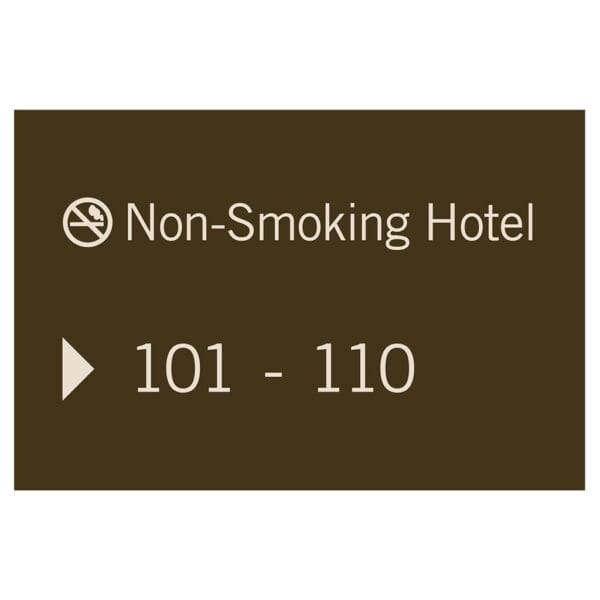 Help guests navigate your hotel easily with directional signs. Signs feature flat copy and come with foam tape for easy mounting. Directional signs are made with vandal-proof photopolymer for interior or exterior use.