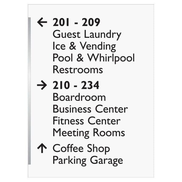 Help guests navigate your hotel easily with directional signs. Signs feature flat copy and come with foam tape for easy mounting. Directionals are for interior and exterior use.