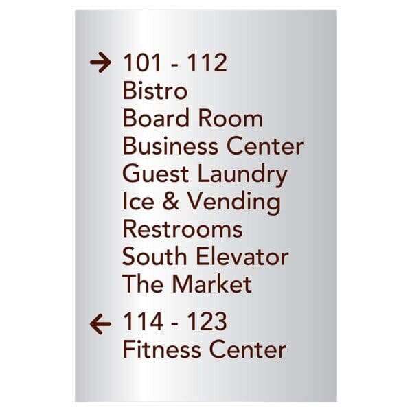 Help guests navigate your hotel easily with directional signs. Signs feature flat copy and come with foam tape for easy mounting. Directionals are for interior use only.