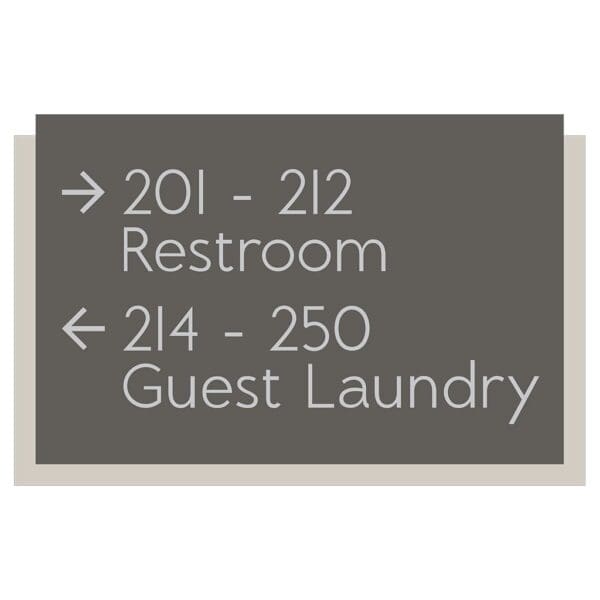 Help guests navigate your hotel easily with directional signs. Signs feature raised copy and come with foam tape for easy mounting. Directionals are made with vandal-proof photopolymer for exterior use.