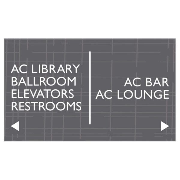 Help guests navigate your hotel easily with directional signs. Signs feature flat copy and come with foam tape for easy mounting. Directionals are for interior use only.