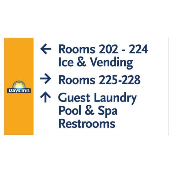 Help guests navigate your hotel easily with directional signs. Signs feature digitally printed text to display need to know information to guest quickly and easily. Each directional sign comes with foam tape on back for easy mounting. For interior and exterior use.
