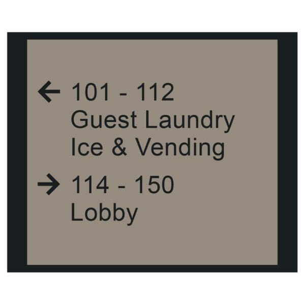 Help guests navigate your hotel easily with directional signs. Signs feature raised copy and come with foam tape for easy mounting. Directionals are made with a vandal-proof photopolymer for interior or exterior use.