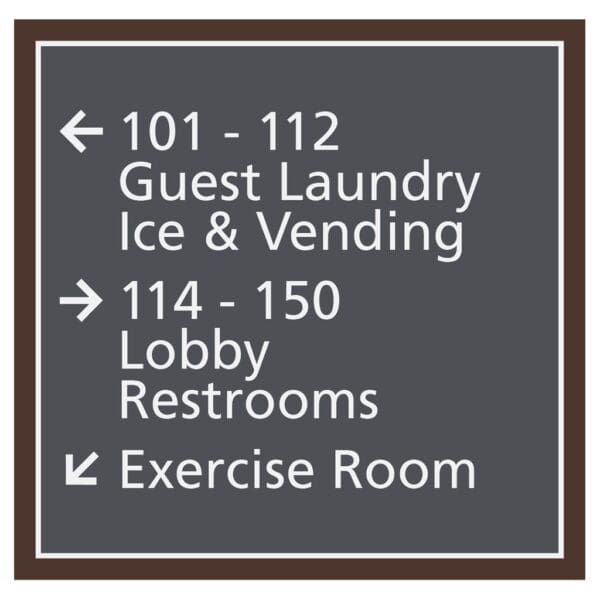 Help guests navigate your hotel easily with directional signs. Signs feature raised copy and come with foam tape for easy mounting. Directionals are made with vandal-proof photopolymer for interior or exterior use.