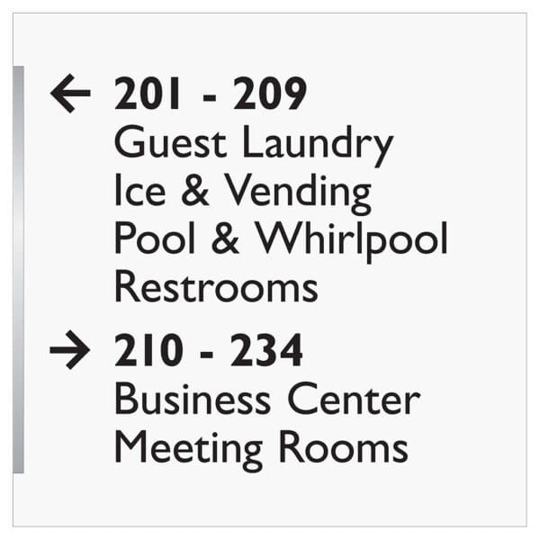 Help guests navigate your hotel easily with directional signs. Signs feature flat copy and come with foam tape for easy mounting. Directionals are for interior and exterior use.