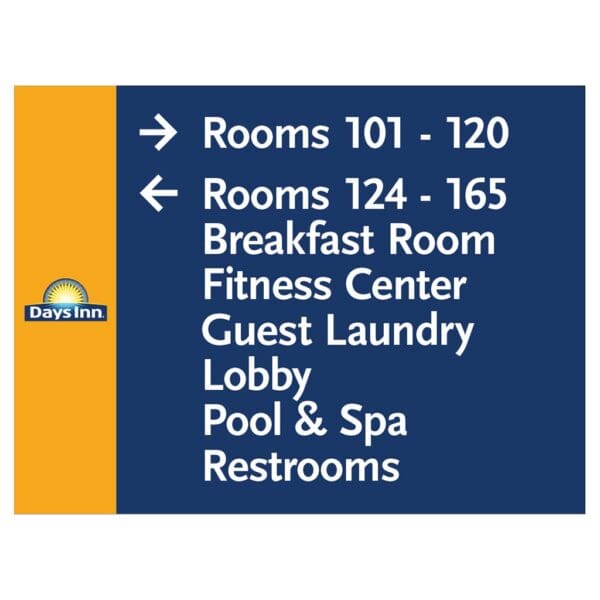 Help guests navigate your hotel easily with directional signs. Signs feature flat copy and come with foam tape for easy mounting. Directional are for interior and exterior use.