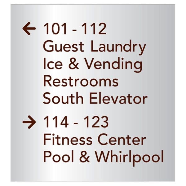 Help guests navigate your hotel easily with directional signs. Signs feature flat copy and come with foam tape for easy mounting. Directionals are for interior use only.
