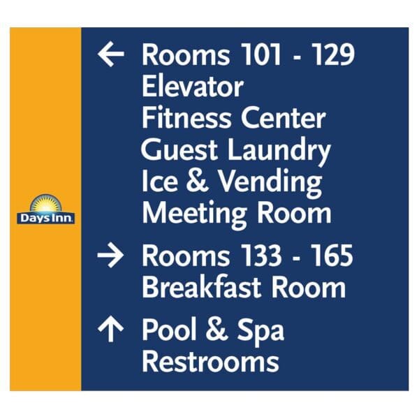 Help guests navigate your hotel easily with directional signs. Signs feature flat copy and come with foam tape for easy mounting. Directional are for interior and exterior use.