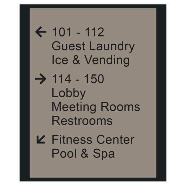 Help guests navigate your hotel easily with directional signs. Signs feature raised copy and come with foam tape for easy mounting. Directionals are made with a vandal-proof photopolymer for interior or exterior use.