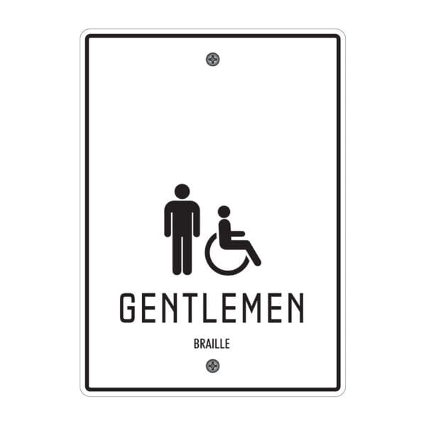 Mark each bathroom with a restroom identification sign. Restroom signs feature raised text, symbols and Grade 2 Braille. Signs come with mounting hardware and are for interior use only.