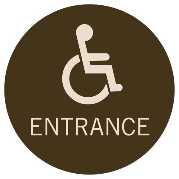 Accessible Entrance signs feature flat text and foam tape on the back for easy mounting. Signs are for exterior use only.