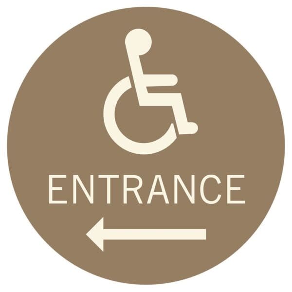 Accessible Entrance signs feature flat text and foam tape on the back for easy mounting. Signs are for exterior use only.