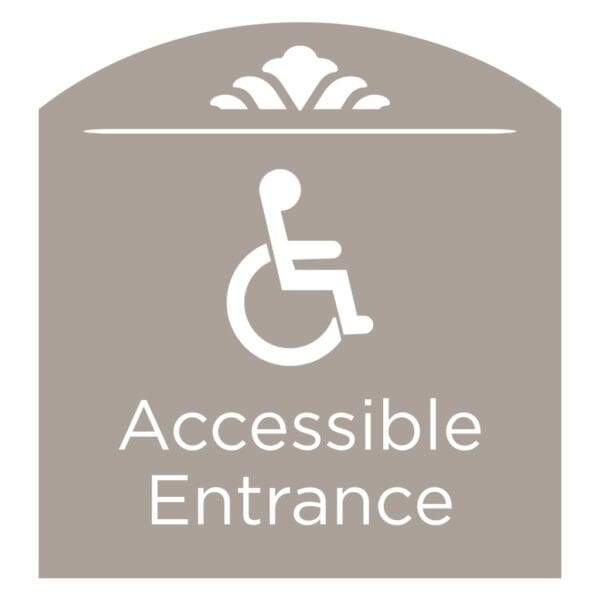 Make your hotel welcoming for every guest. Post accessibility entrance signs to indicate the location of a handicap accessible entrance. Text on sign is digitally printed and comes with foam tape on the back for easy mounting. For interior and exterior use.