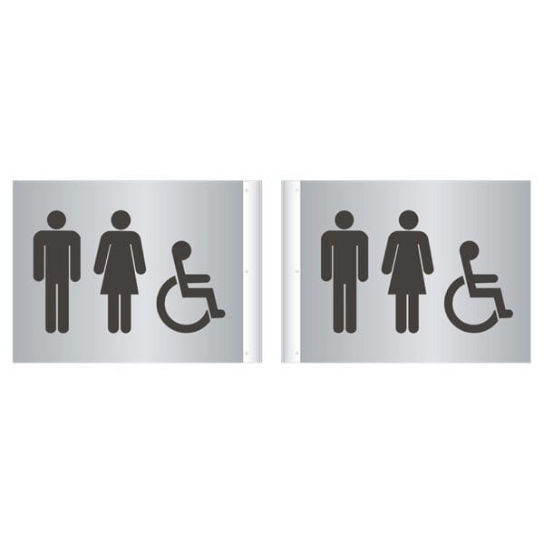 Double-sided restroom sign is used to help guests and employees find their intended destination. Sign is mounted to the wall and contains identical tactile text on both sides. Signs come with mounting hardware and are for interior use only.