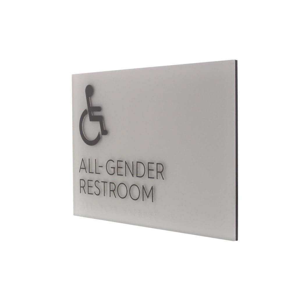 Mark each bathroom with a restroom identification sign. Restroom signs feature raised text, symbols and Grade 2 Braille. Signs come with foam tape on back for easy mounting.