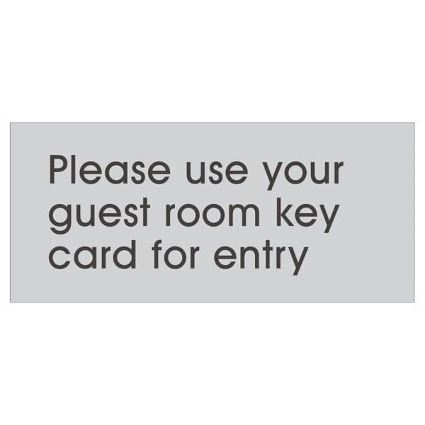 Inform guests when and where they have to use their key card to gain entry. Text on sign in digitally printed and comes with foam tape on the back for easy installation. For interior and exterior use.