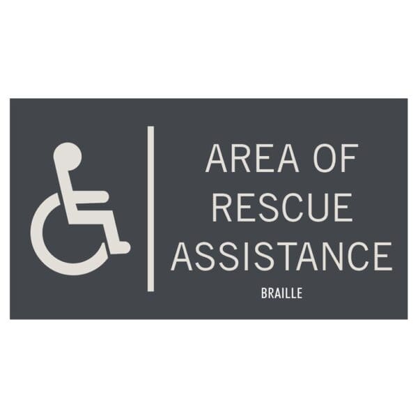 Area of Assistance signs are an essential part of making your hotel safe for people of all abilities. AOA signs feature flat text and foam tape on the back for easy mounting. Signs are made with photopolymer for interior and exterior use.