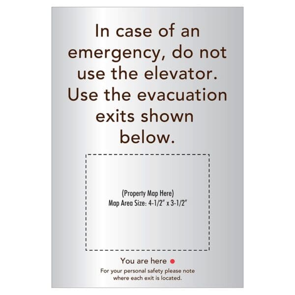 Keep guests safe during an emergency with elevator evacuation signs. Signs use flat copy and comes with foam tape for easy mounting. For interior use only.