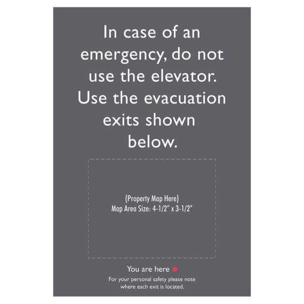 Keep guests safe during an emergency with elevator evacuation signs. Signs use flat copy and comes with foam tape for easy mounting. For interior or exterior use.