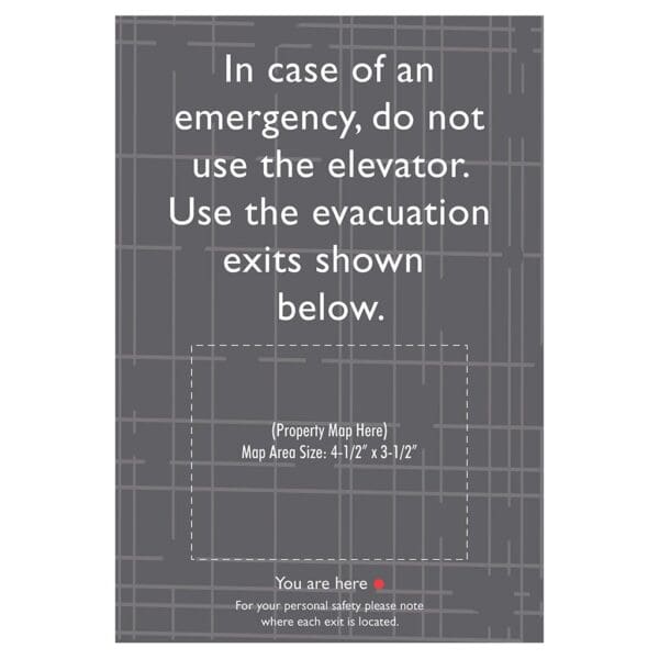 Keep guests safe during an emergency with elevator evacuation signs. Signs use flat copy and comes with foam tape for easy mounting. For interior use only.
