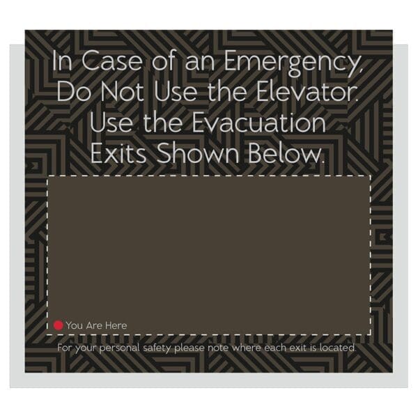 Keep guests safe during an emergency with elevator evacuation signs. Signs use flat copy and comes with foam tape for easy mounting. For interior use only.