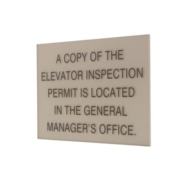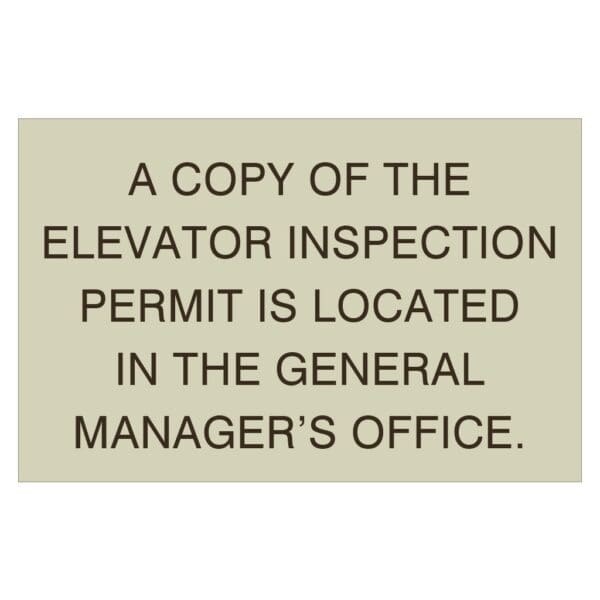 Elevator Inspection Permit Sign
