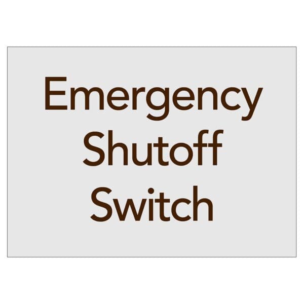 Inform and protect guests with Emergency Shutoff Switch signs. Text on sign is flat and is for exterior use only. See below to select between wall mount or a post/fence mount (hardware provided).
